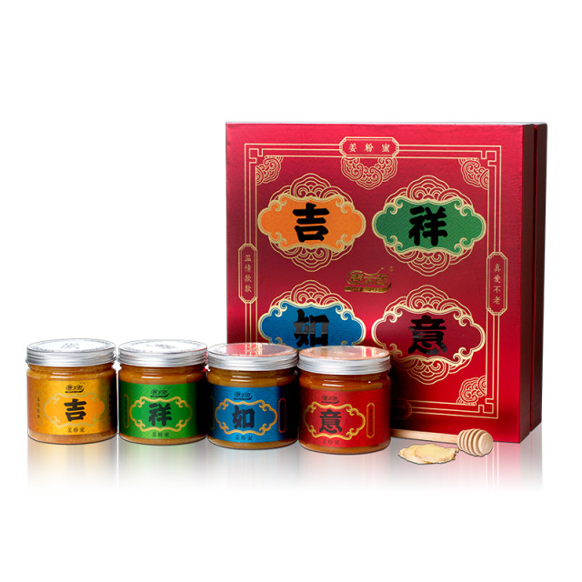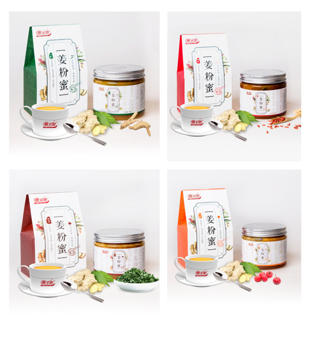 中国中医科学院张立教授率领的科研团队,根据中医理论、食疗养生药膳原理,根据人体不同体质需求,让姜粉、荆条蜜、紫竹盐基础配方再搭配玫瑰、枸杞、西洋参、辣木叶、山楂、山药、大枣等名贵药膳食材为伍,让药食同源的食材发挥其自身的最大功效。尤其是我们利用了特殊的加工工艺,让姜粉蜜里的活性酶、姜酵素含量充足。
